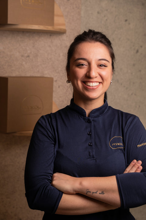 Francesca Corbo è la figura che porta equilibrio e armonia all'interno di Maicol. Con una sensibilità unica, riesce a infondere nei dolci non solo tecnica ma anche emozione, trasformando ogni creazione in un'esperienza sensoriale. Il suo tocco elegante e la sua passione per la pasticceria si riflettono in ogni dettaglio del laboratorio, dove la cura e l'attenzione sono protagonisti. Francesca è l'anima che dà vita all'idea di Maicol, una visione che fonde tradizione e modernità, regalando ogni giorno qualcosa di speciale. Con il suo sorriso e la solarità accoglie ogni cliente che varca la soglia della pasticceria.